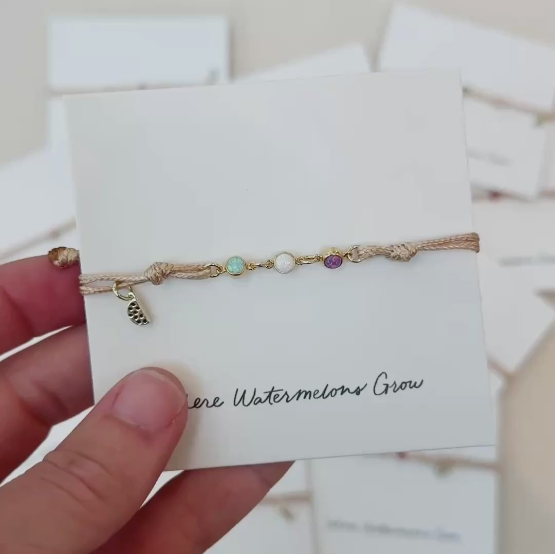 Meet the Birthstone Bay Bracelet, a sweet and meaningful way to keep your favorite people close. Each bracelet features 14k gold-filled settings paired with shimmering opals in colors that represent traditional birthstones. All strung on a water-resistant, adjustable cord for easy, everyday wear. Choose a single opal that speaks to you, or mix and match to create a lineup of the ones you love most.