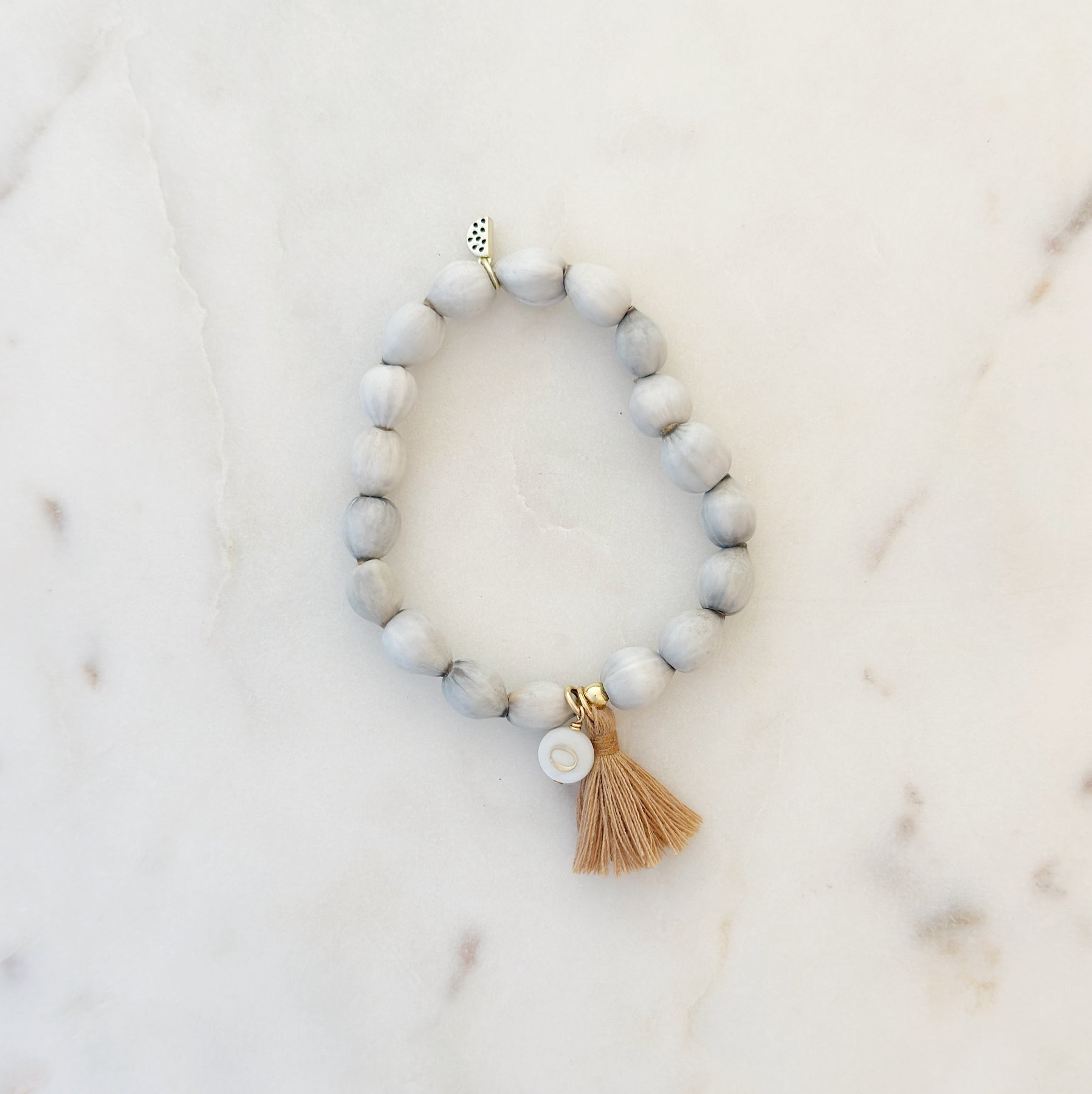 Our Bali Beaded Bracelet brings a laid-back island feel to your everyday style. Made with wild panya seed beads, it rolls on smoothly for a comfortable, easy fit you’ll forget you’re wearing. Make it your own by adding one to three Mother-of-Pearl initial charms for a personal touch.